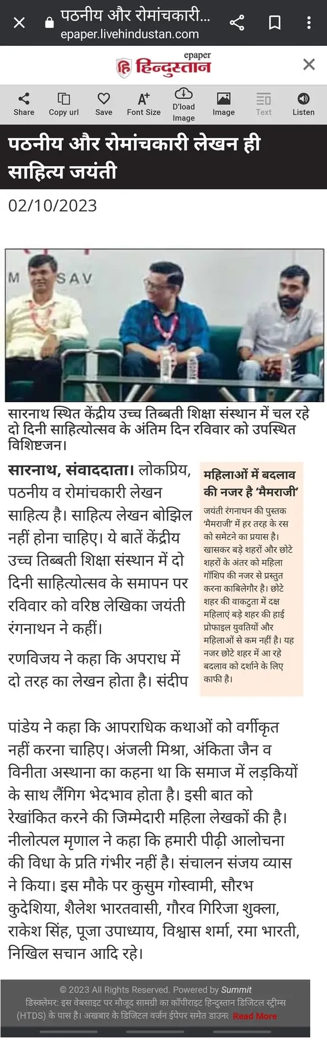 पठनीय और रोमांचकारी लेखन ही साहित्य
